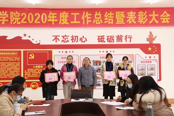 會(huì)上,學(xué)校副校長(zhǎng)彭高彬宣讀了經(jīng)濟(jì)管理學(xué)院對(duì)2020年度教育教學(xué)工作中表現(xiàn)突出的先進(jìn)個(gè)人進(jìn)行表彰的決定,石娜、劉忠略、農(nóng)李菱老師被評(píng)為“優(yōu)秀教師”,勞文文、黃琴、覃蘭蘭、廖嬌被評(píng)為“優(yōu)秀輔導(dǎo)員”。獲獎(jiǎng)教師表示在今后的工作中將會(huì)一如既往地努力奮斗,為經(jīng)濟(jì)管理學(xué)院這個(gè)大家庭的蓬勃發(fā)展貢獻(xiàn)自己的一份力量。