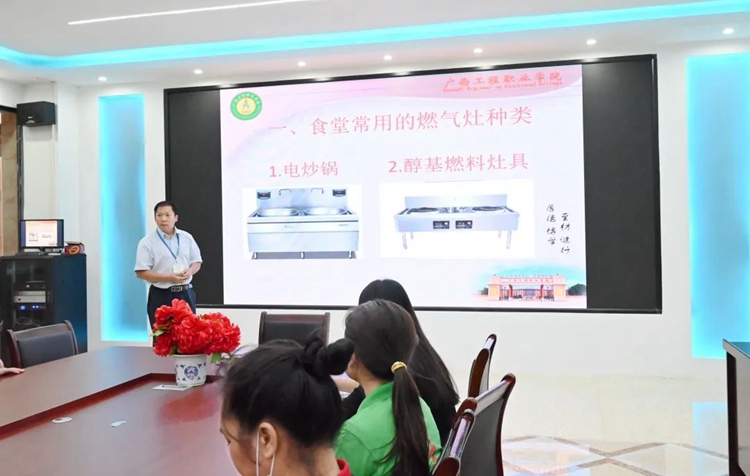 劉兆兵主任介紹了目前食堂普遍使用的灶具種類,并強調了各類灶具容易出現(xiàn)風險點,要求食堂廚房使用安全系數(shù)較高的灶具。例如:電砂鍋存在漏電的風險;醇基燃料灶存在漏油、易爆、儲存安全風險;液化氣灶存在燃氣泄漏、易燃、易爆的風險等。他還結合各地食堂發(fā)生火災的案例,詳細介紹了如何選擇合格灶具,正確使用燃氣灶具、以及發(fā)生火災后如何在黃金時段的自救等。
