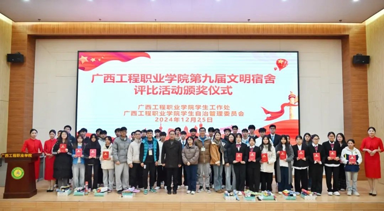 為進(jìn)一步加強(qiáng)宿舍文化建設(shè),培養(yǎng)學(xué)生的良好生活習(xí)慣,創(chuàng)建溫馨的生活環(huán)境,2024年12月25日,學(xué)校在圖文信息大樓三樓學(xué)術(shù)報(bào)告廳舉行第九屆文明宿舍評(píng)比活動(dòng)頒獎(jiǎng)儀式。