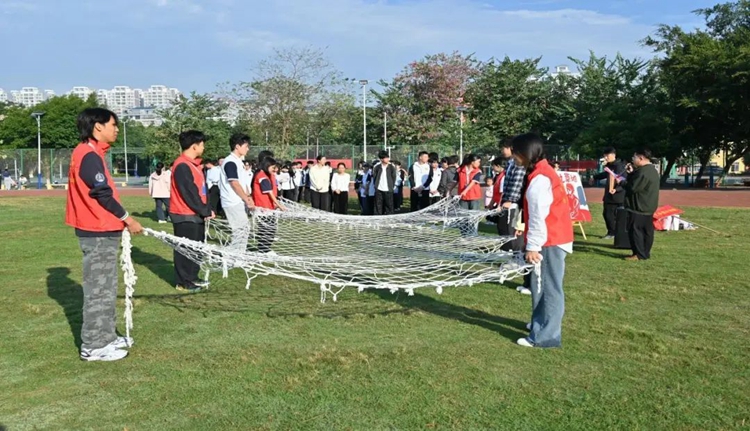 首先進(jìn)行紅軍過草地關(guān)卡一活動,兩組隊長帶領(lǐng)隊員在固定網(wǎng)格區(qū)域按照匍匐前進(jìn)的姿勢穿過網(wǎng)格,體驗紅軍過草地過程。紅軍過草地的故事給同學(xué)們帶來了啟示:團(tuán)隊合作和領(lǐng)導(dǎo)力是攻克難關(guān)的關(guān)鍵,只有憑借著意志的力量和不屈不撓的精神才能實(shí)現(xiàn)自己的目標(biāo),無論在什么時候都應(yīng)該像紅軍一樣,砥礪前行,永不言棄。