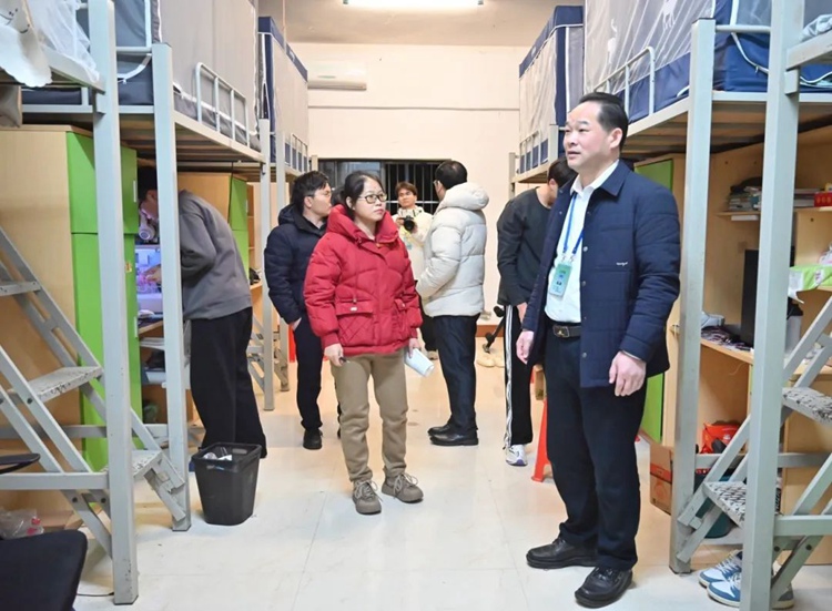 新年伊始,春意盎然。為及時深入了解學(xué)生返校后的學(xué)習(xí)生活情況,加強(qiáng)宿舍文明建設(shè),我校黨委書記、督導(dǎo)專員蒙本曼,副校長黃德偉,學(xué)生工作處、二級學(xué)院負(fù)責(zé)人深入學(xué)生宿舍開展走訪慰問活動。