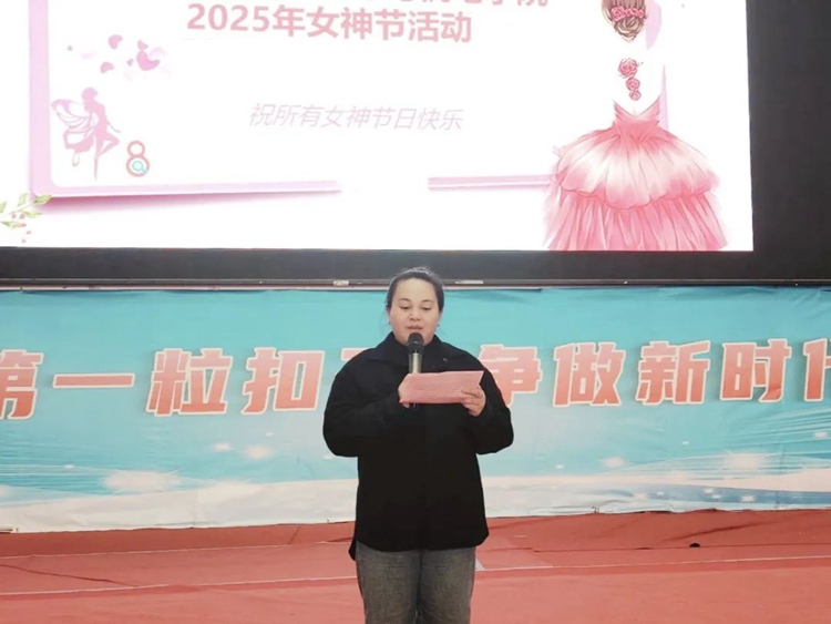 校長助理梁善雅致辭,她指出,“三八”國際勞動?jì)D女節(jié)不僅是女教師們的節(jié)日,更是大家共慶女性力量與貢獻(xiàn)的美好時刻。女教職工們不僅是學(xué)校的主力軍,更是學(xué)校的亮麗風(fēng)景線,她們在教育教學(xué)、學(xué)生管理等崗位作用巨大,為培養(yǎng)優(yōu)秀人才和學(xué)校發(fā)展立下汗馬功勞。同時,她們也是家庭的支柱,展現(xiàn)了女性的堅(jiān)韌與奉獻(xiàn)。在此,她提出三點(diǎn)希望和要求:一是要自信、自立、自強(qiáng),愛崗敬業(yè),為學(xué)校發(fā)展貢獻(xiàn)力量;二是要自尊自愛,找到工作、事業(yè)、家庭的平衡點(diǎn),弘揚(yáng)美德,引領(lǐng)風(fēng)尚;三是要注重身心健康,學(xué)會保護(hù)自己,提升素質(zhì),展示巾幗風(fēng)采。最后,祝愿所有女同胞節(jié)日快樂,心想事成,永葆青春!