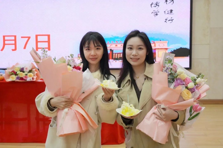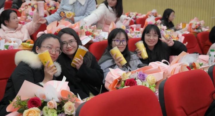 女教師們手捧鮮花和奶茶、蛋糕大家沉浸于節(jié)日的歡樂氛圍之中,彼此傳遞著溫馨的節(jié)日祝福,共慶這美好的時光。