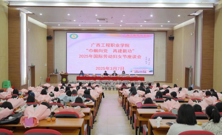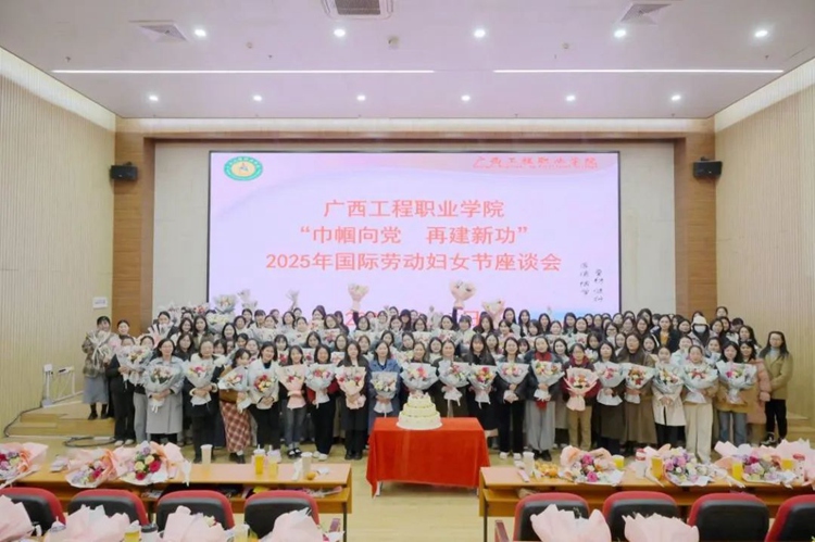 3月7日,學(xué)校在圖文信息大樓一樓學(xué)術(shù)報告廳舉行“巾幗向黨,再建新功”主題慶祝“三八”國際婦女節(jié)座談會,向全校女教職工傳達(dá)了溫馨且滿載深情的節(jié)日祝愿。副校長蔣茂麗,校長助理梁善雅,校工會主席、招生就業(yè)處副處長陳麗燕,婦委會主任、藝術(shù)設(shè)計(jì)學(xué)院黨支部書記、院長覃鳳姣及全體女教職工參加座談會。