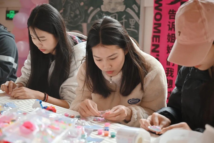 活動現(xiàn)場,有巧手折制手工花的創(chuàng)意環(huán)節(jié),也有自制個性發(fā)圈的趣味體驗(yàn),以及傳統(tǒng)扎染藝術(shù)的獨(dú)特魅力展現(xiàn)等,讓每一位參與者都能盡情展現(xiàn)自己的青春風(fēng)采與獨(dú)特魅力。