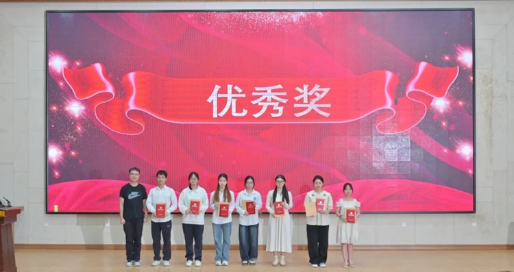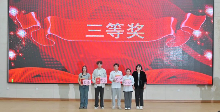 圖為團(tuán)委副書(shū)記李麗清為獲得“一等獎(jiǎng)”的同學(xué)頒獎(jiǎng)