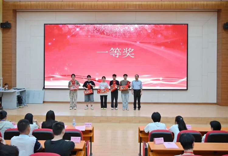 圖為團(tuán)委副書記李麗清為獲得“二等獎(jiǎng)”的同學(xué)頒獎(jiǎng)