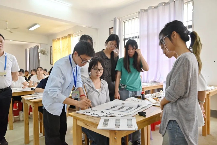 在韋國慶老師的指導(dǎo)下,學(xué)生從執(zhí)筆入手,掌握書寫技巧,體會單字結(jié)構(gòu)與整體布局之美。傳統(tǒng)書法與現(xiàn)代教學(xué)結(jié)合,既提升學(xué)生書寫能力,也讓書法藝術(shù)在課堂煥發(fā)生機。