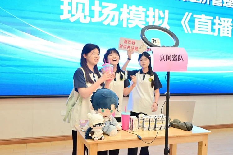 隨著比賽正式開始,各參賽隊伍依次登場。比賽中,參賽選手精神飽滿,分發(fā)揮自己的專業(yè)知識和創(chuàng)新思維,化身為專業(yè)電商主播,自信從容,模擬直播帶貨精彩紛呈。