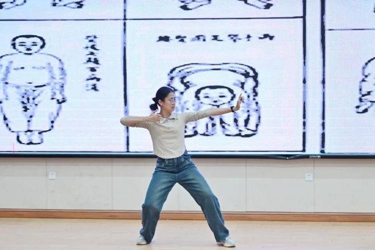 隨后,醫(yī)務人員帶領同學們開啟了實踐體驗,跟隨指導,一招一式學習八段錦健康操,感受傳統(tǒng)功法對身體氣血的調和作用。