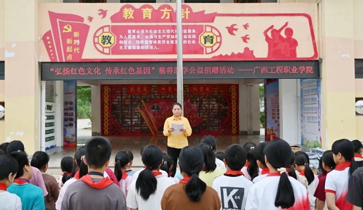 紅色精神照亮成長路,公益善舉溫暖學(xué)子心。此次捐贈活動不僅是一次愛心的傳遞,是一次精神的洗禮,更是對教育事業(yè)的支持。廣西工程職業(yè)學(xué)院以實際行動弘揚了紅色革命精神,踐行了社會責(zé)任感和擔(dān)當,為地方教育事業(yè)注入了新的活力,激勵廣大青少年賡續(xù)紅色血脈,勤奮學(xué)習(xí),努力成長為擔(dān)當民族復(fù)興大任的時代新人。