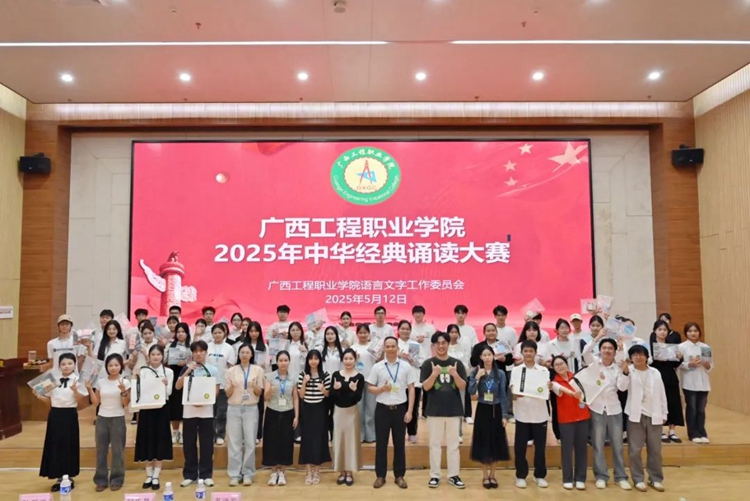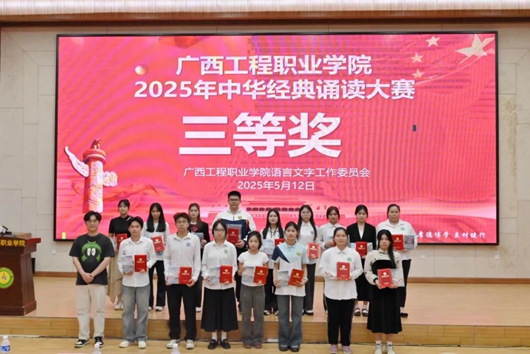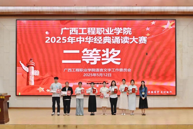 為全面貫徹落實(shí)黨的二十大和二十屆二中、三中全會(huì)精神,深入貫徹落實(shí)全國教育大會(huì)精神,服務(wù)教育強(qiáng)國、文化強(qiáng)國建設(shè),加大國家通用語言文字推廣普及力度,傳承弘揚(yáng)中華優(yōu)秀傳統(tǒng)文化,落實(shí)全國青少年讀書行動(dòng),推進(jìn)文化自信自強(qiáng),2025年5月12日,我校在圖文信息大樓一樓學(xué)術(shù)報(bào)告廳舉行廣西工程職業(yè)學(xué)院2025年“典耀中華,賡續(xù)文脈”中華經(jīng)典誦讀大賽。