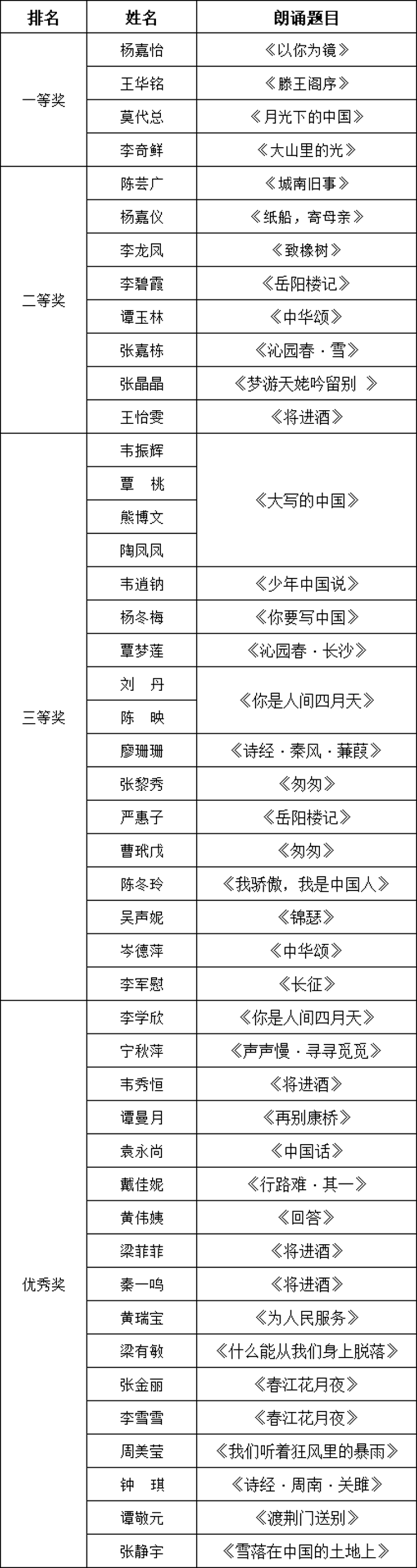 圖為2025年中華經(jīng)典誦讀大賽獲獎(jiǎng)名單