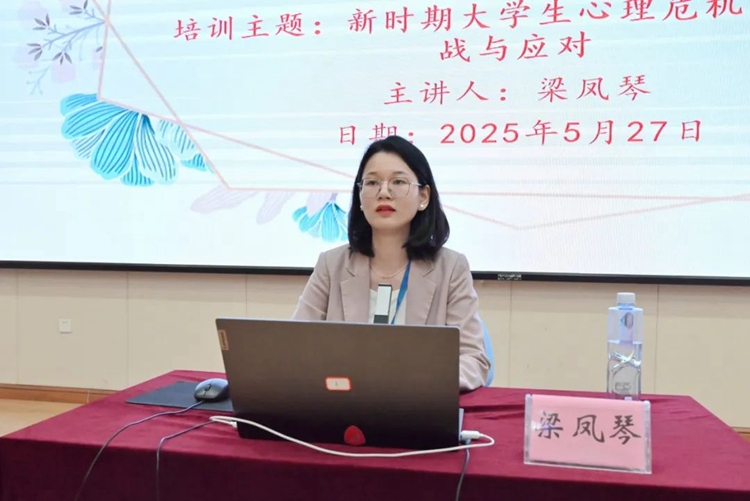 培訓(xùn)會上,梁鳳琴處長以近年數(shù)據(jù)和典型案例為切入點,深入分析心理危機的復(fù)雜誘因與發(fā)展規(guī)律;講解危機發(fā)現(xiàn)處置時,聚焦十大關(guān)鍵線索、識別評估與干預(yù)流程,強調(diào)多方協(xié)同;構(gòu)建心理育人格局方面,提出“五育并舉”育心理念,介紹輔導(dǎo)員“三進三同”專項工作,倡導(dǎo)學(xué)生工作隊伍深度融入學(xué)生日常,為心理育人提供實踐指引。