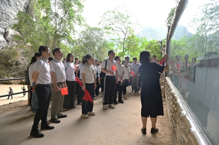 崖中巖洞藏日月,洞內(nèi)農(nóng)運轉(zhuǎn)乾坤。當天活動第一站,同志們走進了列寧巖——廣西農(nóng)民運動講習(xí)所舊址。