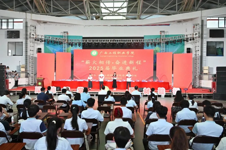 2025年6月24日,廣西工程職業(yè)學(xué)院“薪火相傳 奮進(jìn)新程”2025屆畢業(yè)典禮在體育館舉行。學(xué)校黨政領(lǐng)導(dǎo)班子出席畢業(yè)典禮,各部門負(fù)責(zé)人、科長(zhǎng)、畢業(yè)班專任教師、全體輔導(dǎo)員及2025屆畢業(yè)生參加畢業(yè)典禮。學(xué)校黨委副書記黃秋霞主持畢業(yè)典禮。