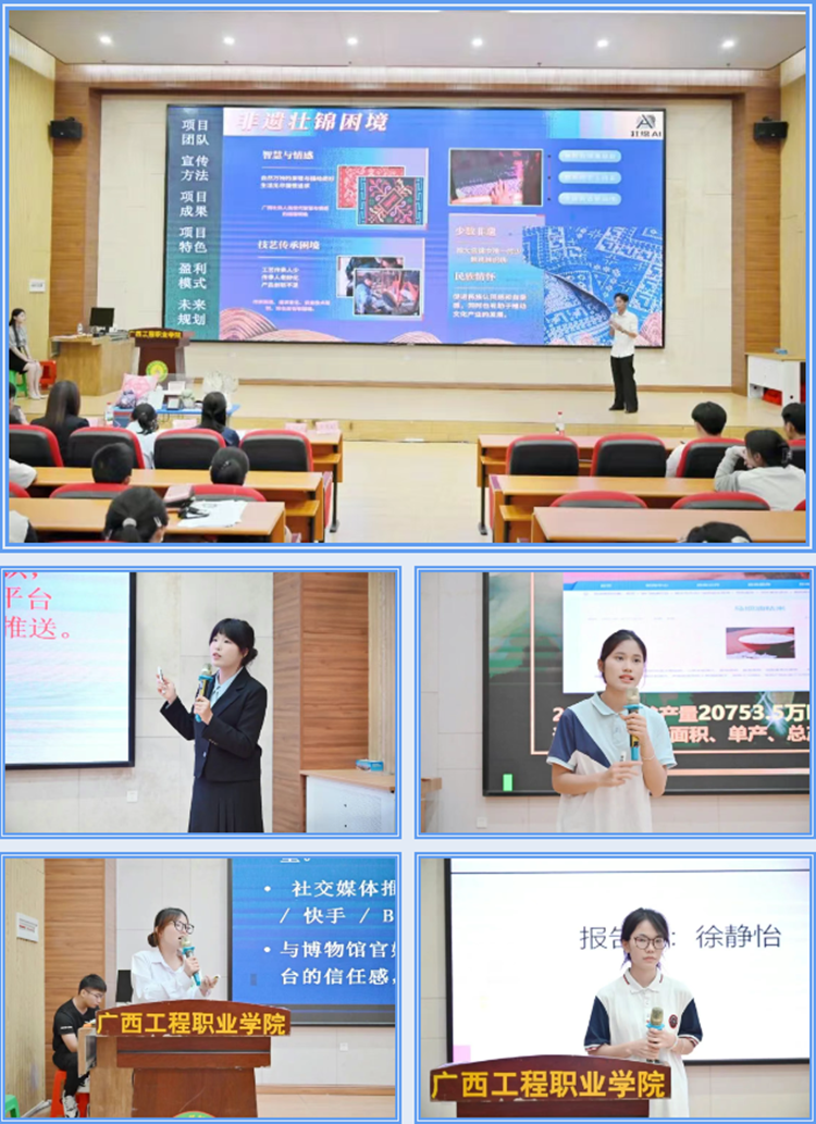 參賽項目涵蓋人工智能、鄉(xiāng)村振興、文化創(chuàng)意、智能制造、大健康產(chǎn)業(yè)等多個領(lǐng)域,充分展現(xiàn)了我校學(xué)子立足專業(yè)、服務(wù)社會的責任擔當。其中,《百色印象:穿越時空的紅色之旅》《小食代一個有溫度的健康陪伴者》《壯錦未來—壯錦編織技術(shù)的現(xiàn)代創(chuàng)新與全球推廣》等項目憑借獨特的創(chuàng)新視角和扎實的實踐成果,贏得了評委和觀眾的一致好評。