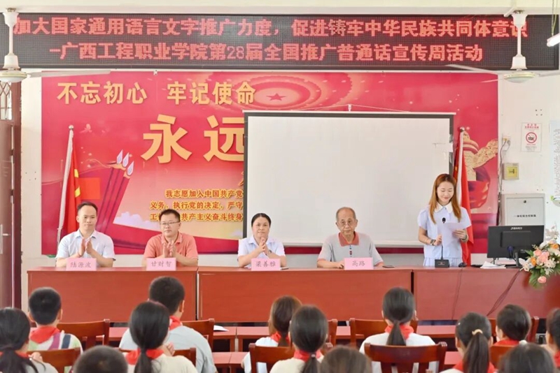語言是溝通的橋梁,普通話是民族文化傳承的紐帶。為進一步推廣國家通用語言文字,助力鄉(xiāng)村教育語言文化建設(shè),2025年9月19日,廣西工程職業(yè)學(xué)院與太平鎮(zhèn)中心小學(xué)攜手,在太平鎮(zhèn)中心小學(xué)開展了一場內(nèi)容豐富、意義深遠(yuǎn)的普通話推廣宣傳活動。此次活動不僅搭建了校地合作的交流平臺,更讓普通話的魅力在校園中綻放,為師生們帶來了一場別樣的語言文化盛宴。