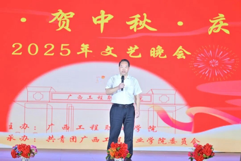 黨委書記、政府督導(dǎo)專員蒙本曼宣布2025 年廣西工程職業(yè)學(xué)院 “迎新生?賀中秋?慶國慶” 文藝晚會正式開始。