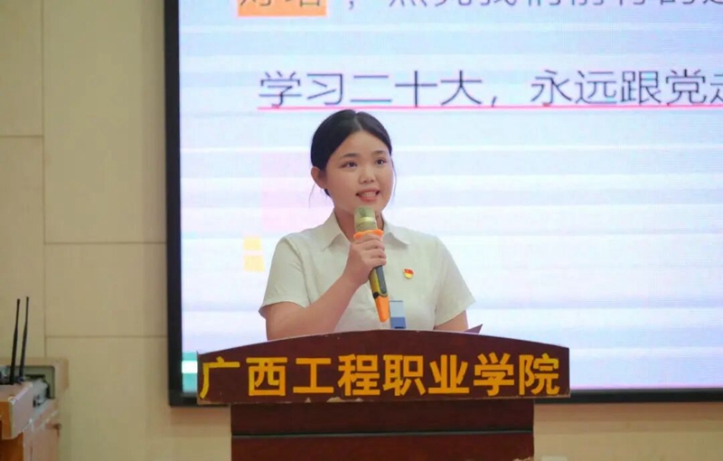圖為韋麗欣宣講主題為《以青春之聲,傳時代新聲》