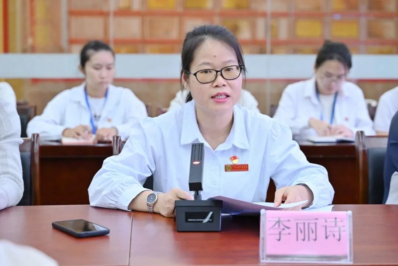 圖為黨總支部書記李麗詩作表態(tài)發(fā)言