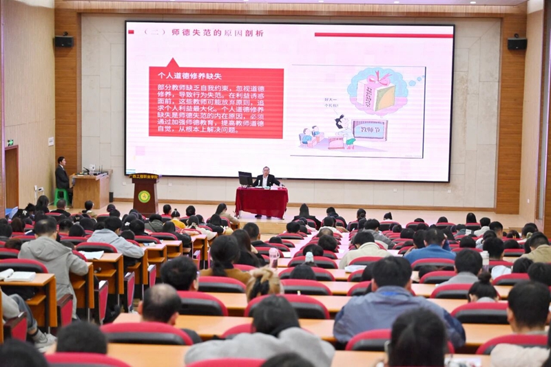 為深入加強我校師德師風建設,全面提升教師職業(yè)道德水平,著力打造一支業(yè)務精良、師德師風過硬的高素質(zhì)師資隊伍,11月4日下午,廣西工程職業(yè)學院2025年師德師風專題培訓在圖文信息大樓一樓學術(shù)報告廳舉行。學校紀委書記、副校長彭高彬作題為《教師師德師風警示教育》的專題講座。
