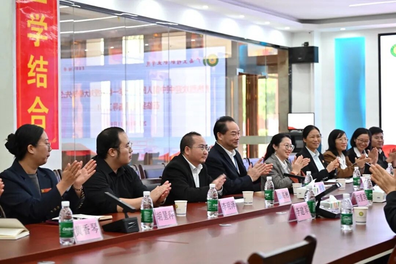 2025年11月9日,中國首批一級教授(文科院士)、中國科學技術哲學領軍學者、中國人民大學一級教授劉大椿先生,帶領中國人民大學、中國農業(yè)大學、廣西大學等專家教授一行4人蒞臨我校指導工作。學校黨委書記、政府督導專員蒙本曼,黨委副書記黃秋霞,紀委書記、副校長彭高彬,副校長蔣茂麗、李明澤等校領導及各部門負責人熱情接待。