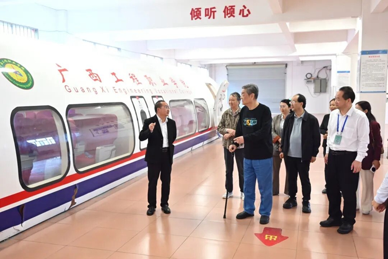在學校領導陪同下,劉大椿先生一行走訪參觀了校園環(huán)境、汽車與機電學院工業(yè)機器人實驗實訓室、土木工程學院建筑材料力學實訓室、 鐵道與航空學院航空模擬實訓室等專業(yè)實訓室場所和校史展。劉大椿先生邊走邊詢問,詳細了解校園規(guī)劃建設、實訓基地功能布局、教學場景應用及校企協(xié)同育人成效,對我校占地近1800畝、全日制在校生2萬人的辦學規(guī)模和技術技能教育的豐碩成果給予高度評價。他指出,學校構建的實訓教育教學體系精準對接市場產業(yè)需求,堅定走科技創(chuàng)新、產教融合、職普融通之路,完全契合現(xiàn)代化職業(yè)教育發(fā)展大勢和建設制造業(yè)強國的國家發(fā)展戰(zhàn)略。