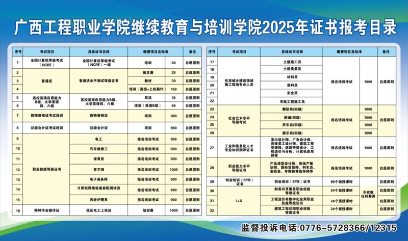廣西工程職業(yè)學(xué)院繼續(xù)教育與培訓(xùn)學(xué)院始終高度重視學(xué)生的學(xué)歷提升和技能發(fā)展,積極與各大高校合作,拓展多樣化學(xué)歷提升途徑,開(kāi)拓多種類型職業(yè)技能證書報(bào)考渠道。