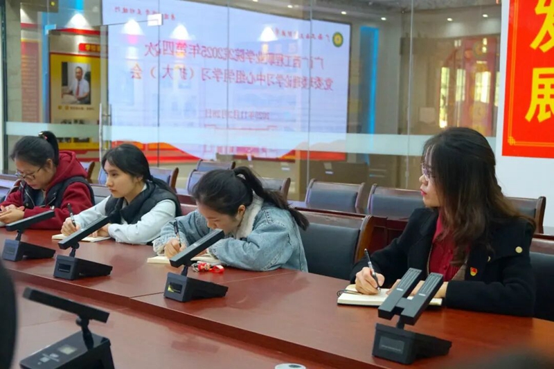 為深入學習貫徹黨的二十屆四中全會精神及“十五五”規(guī)劃相關部署要求,切實把思想和行動統(tǒng)一到黨中央決策部署上來,2025年11月28日15:00,廣西工程職業(yè)學院在圖書館一樓大數(shù)據(jù)中心召開2025年度第四次黨委理論學習中心組學習(擴大)會。全體黨委委員、各黨(總)支部書記、黨委宣傳部工作人員及馬克思主義學院全體教師參加會議。