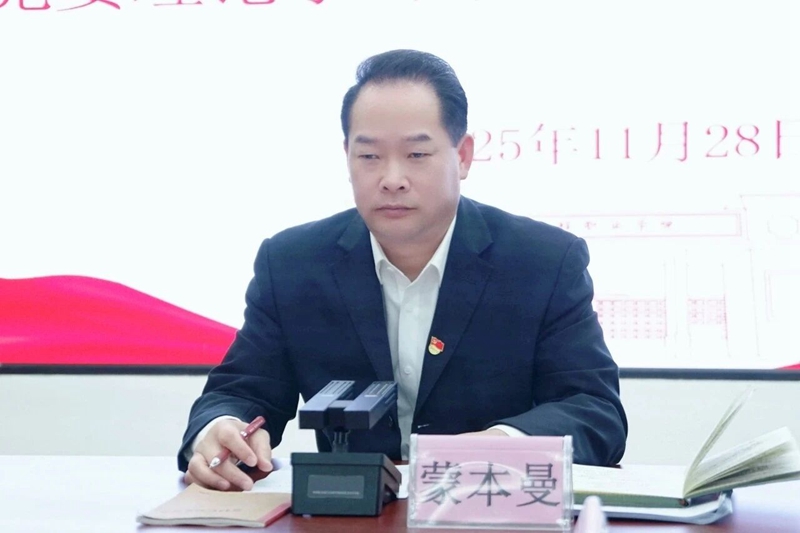 圖為黨委書記、政府督導專員蒙本曼同志主持會議