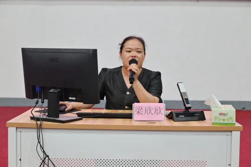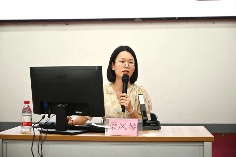 圖為后勤管理中心副主任梁欣欣作《后勤管理》專題教育