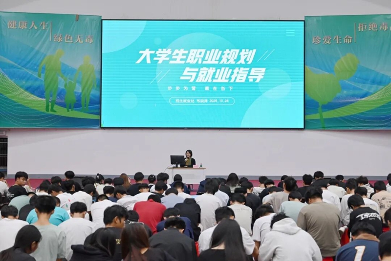 圖為招生就業(yè)處科長韋潤萍主講《大學(xué)生就業(yè)指導(dǎo)》專題教育,她結(jié)合大量典型就業(yè)案例,對當(dāng)前就業(yè)市場形勢展開全面且深入的剖析。專題教育不僅解讀了熱門行業(yè)的發(fā)展動(dòng)態(tài)與趨勢走向,還詳細(xì)闡述了不同崗位所需的核心技能與綜合素養(yǎng),內(nèi)容凝練實(shí)用、干貨滿滿,讓在場學(xué)子受益匪淺。