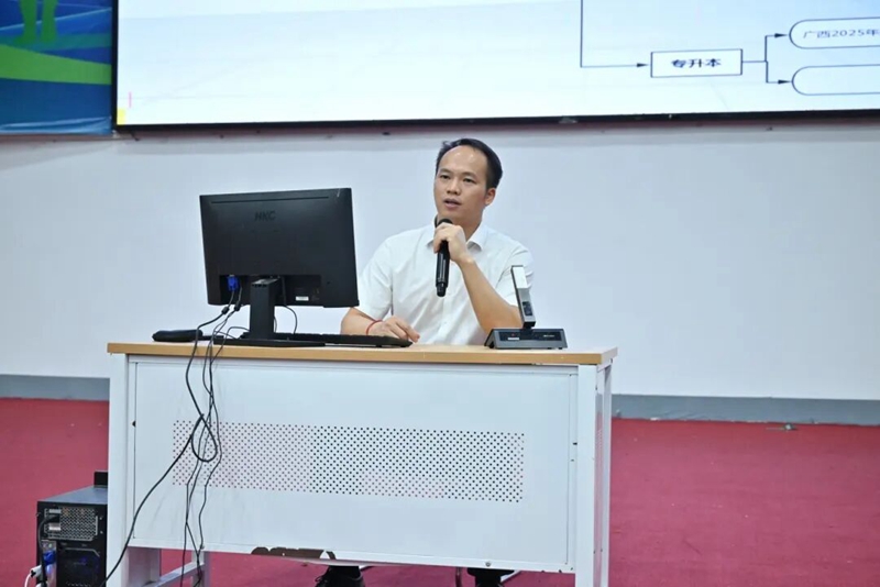 圖為繼續(xù)教育與培訓(xùn)學(xué)院科長陸源波作《專本銜接、職業(yè)資格證解讀》專題教育