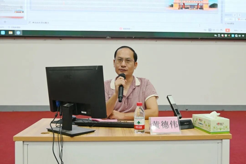 圖為副校長黃德偉作《學(xué)生管理制度解讀》專題教育