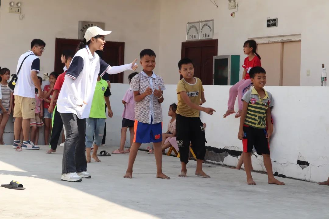第一次見面,雙方都很新奇激動。我們與小朋友親切交談,詢問他們學(xué)習(xí)、生活及平時的文體活動等情況,關(guān)心愛護他們,并以引導(dǎo)參與游戲的方式,拉近與留守兒童之間的情感,給他們帶來歡樂。