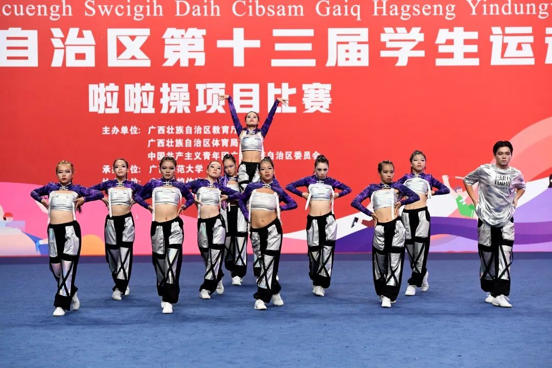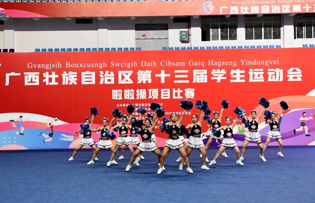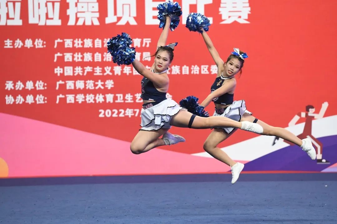 2022年7月15—19日,廣西壯族自治區(qū)第十三屆學(xué)生運(yùn)動會啦啦操項(xiàng)目比賽在廣西師范大學(xué)舉行,我校學(xué)生代表隊(duì)取得雙人花球第七名、雙人街舞第八名和集體街舞第八名的好成績。