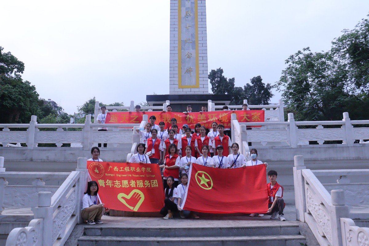 2021年4月24日廣西工程職業(yè)學(xué)院志愿者服務(wù)團(tuán)開展了以“藍(lán)天之下你我他·優(yōu)美環(huán)境靠大家”為主題的校外清潔活動,主要負(fù)責(zé)清潔校外平果烈士陵園、馬頭山公園的白色垃圾、煙頭。