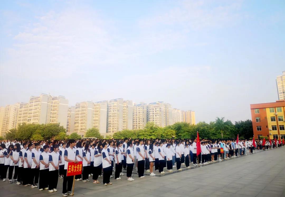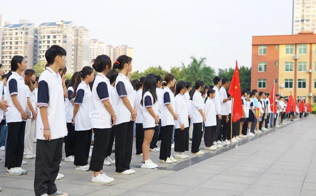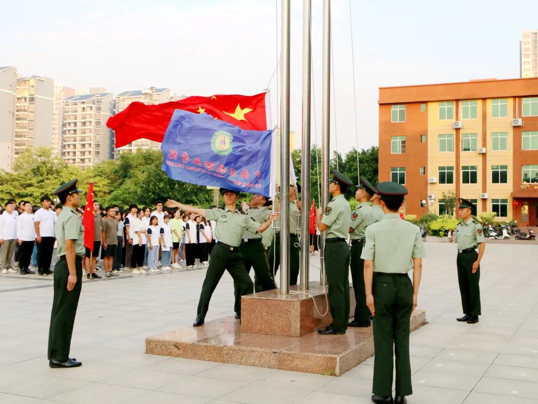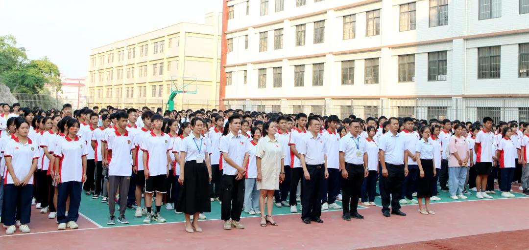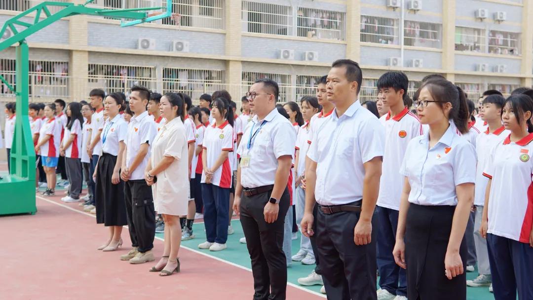 學(xué)校執(zhí)行校長、紀(jì)委書記李益,黨委委員、副校長彭高彬,副校長林萌、黃德偉,校長助理黃秋霞以及中層干部出席升旗儀式