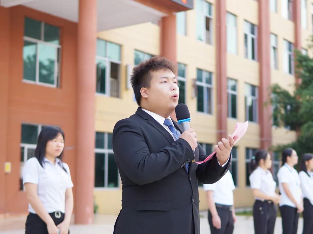 學(xué)生代表經(jīng)濟(jì)管理學(xué)院20級酒店1班的吳桐發(fā)言,他表示,作為新時(shí)代的大學(xué)生要堅(jiān)定理想信念,主動(dòng)擔(dān)當(dāng)歷史使命,進(jìn)一步增強(qiáng)愛黨、愛國、愛校的思想,珍惜時(shí)間,刻苦學(xué)習(xí),努力拼搏,以優(yōu)異成績?yōu)樽鎳暙I(xiàn)自己的一份力,讓明天的祖國更加繁榮、富強(qiáng)!