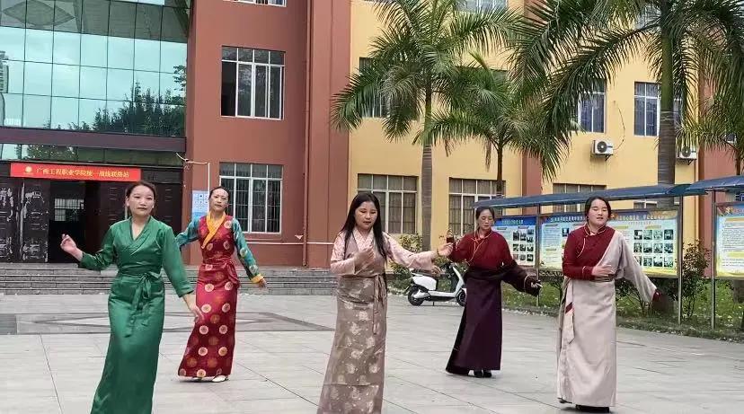 西藏素有“歌舞的海洋”之稱(chēng)。藏族人民能歌善舞,不論老少,皆愛(ài)跳舞。我們藏族的同學(xué)一聽(tīng)到音樂(lè)聲不禁翩翩起舞,他們的動(dòng)作樸實(shí)純粹,雖沒(méi)有那么多絢麗亮眼的動(dòng)作,但都體現(xiàn)出了他們對(duì)于舞蹈和生活的熱愛(ài)。