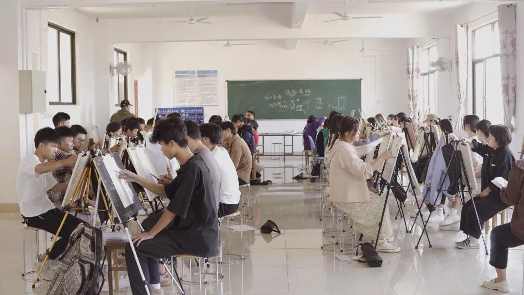 藝術(shù)設(shè)計(jì)學(xué)院的同學(xué)手持畫板