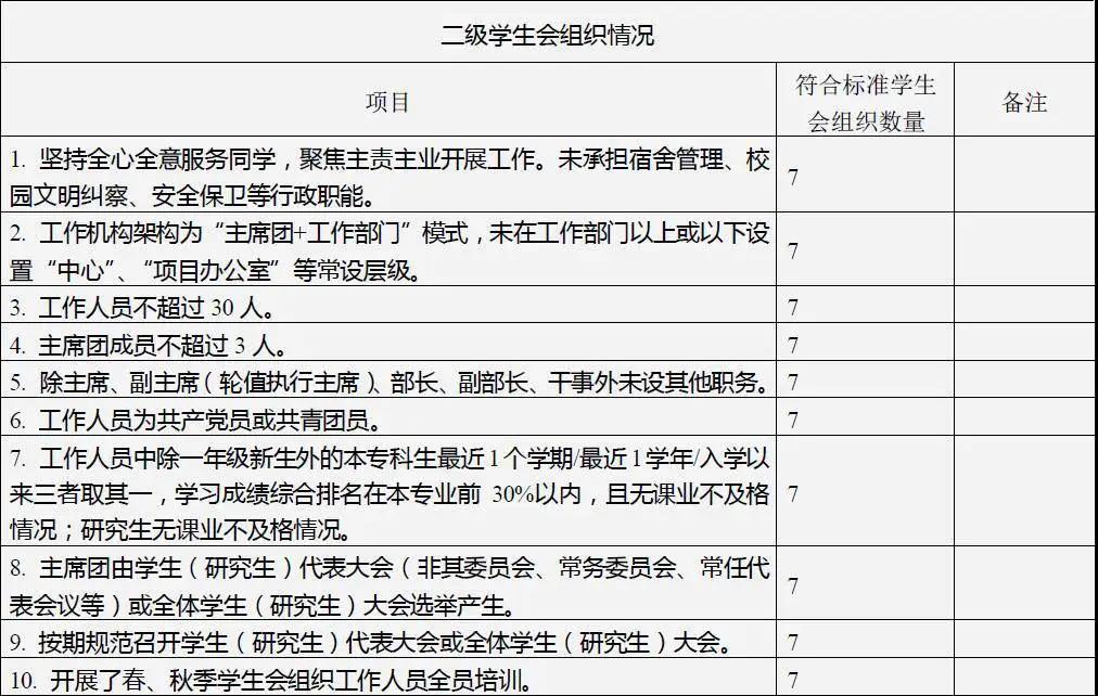 二級學(xué)生會組織(含二級院系、書院、分校區(qū)等學(xué)生會、研究生會)數(shù)量: 7