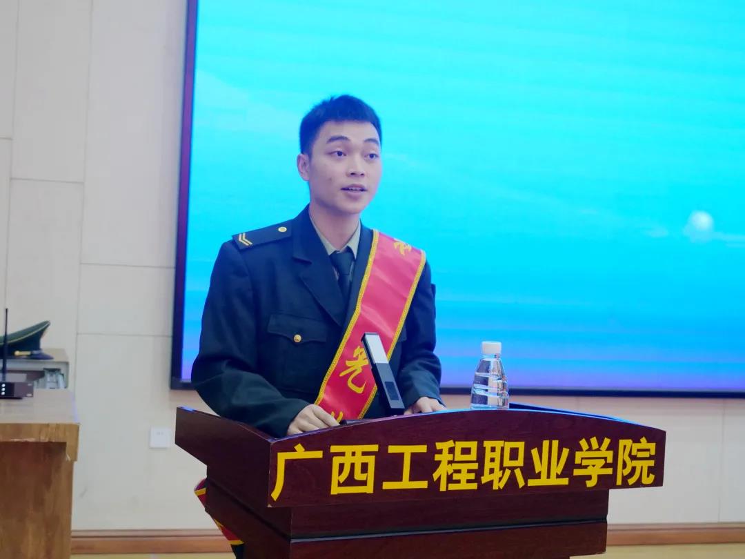 11月11日下午,廣西工程職業(yè)學(xué)院在圖文信息大樓報(bào)告廳舉行2021年度光榮退役復(fù)學(xué)入學(xué)大學(xué)生歡迎儀式。學(xué)校副校長黃德偉副教授,校長助理黃秋霞及部分二級學(xué)院負(fù)責(zé)人出席儀式,2021年度退役復(fù)學(xué)入學(xué)大學(xué)生以及軍事協(xié)會(huì)學(xué)生代表參加了會(huì)議。保衛(wèi)處副處長、征兵工作站負(fù)責(zé)人李捷主持會(huì)議。