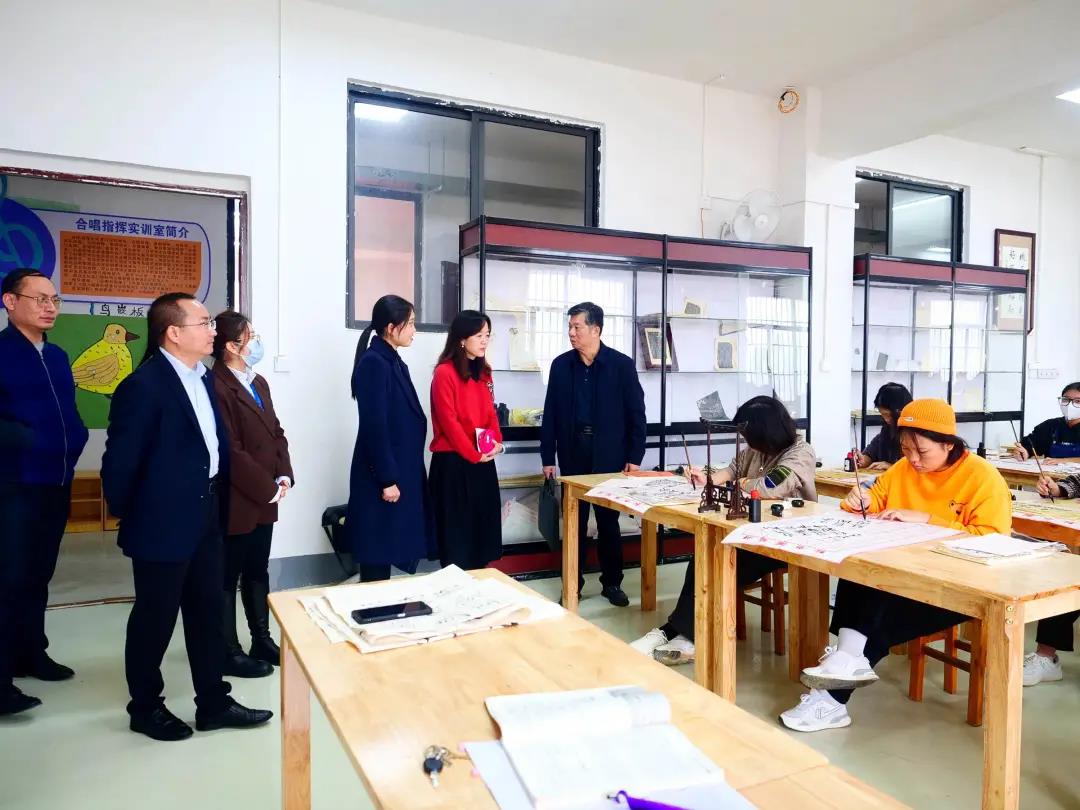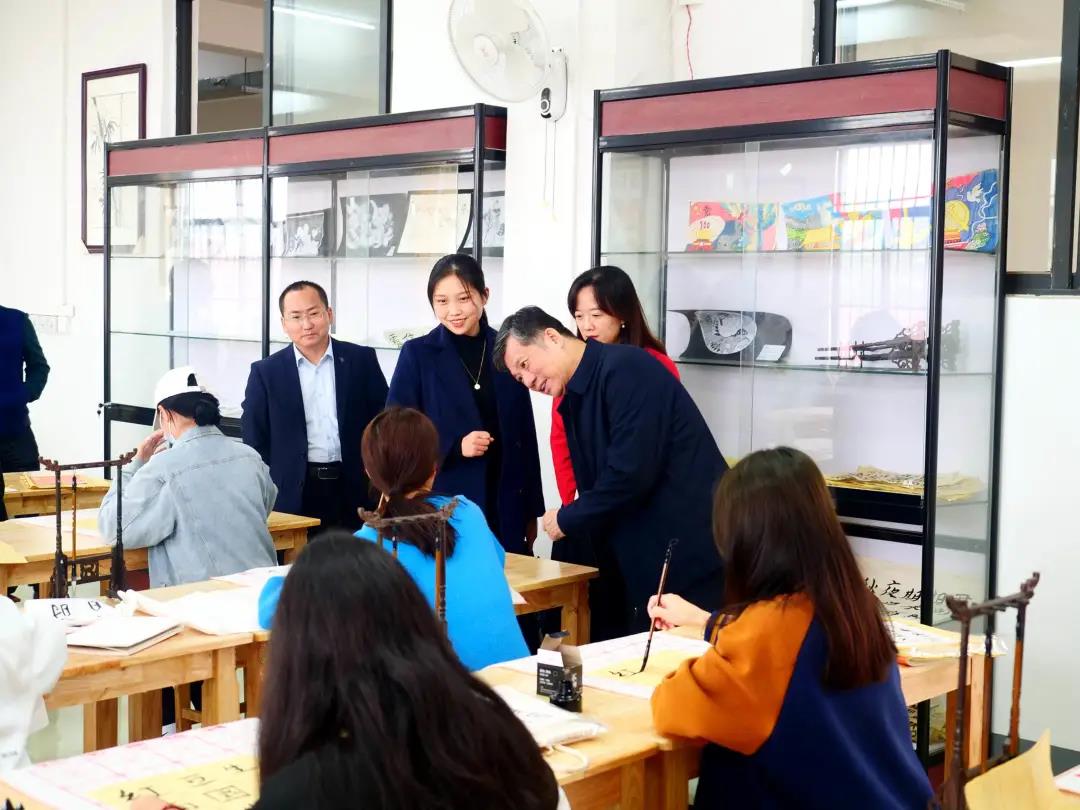 調(diào)研組現(xiàn)場觀摩書法課程教學(xué)并與學(xué)生親切交談,了解課堂教學(xué)情況