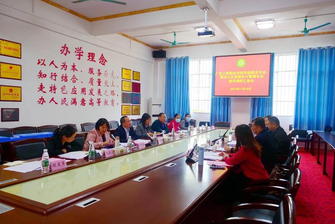 11月19日上午,以桂林師范高等??茖W(xué)校副校長何紅雨為組長的廣西學(xué)前教育職業(yè)教育教學(xué)指導(dǎo)委員會專家組一行4人到我校開展學(xué)前教育專業(yè)、嬰幼兒托育服務(wù)與管理專業(yè)辦學(xué)情況視導(dǎo)調(diào)研,黨委委員、副校長彭高彬,副校長林萌、羅艷妮、黃德偉及相關(guān)處室負(fù)責(zé)人、專任教師參加了調(diào)研工作及意見反饋會。