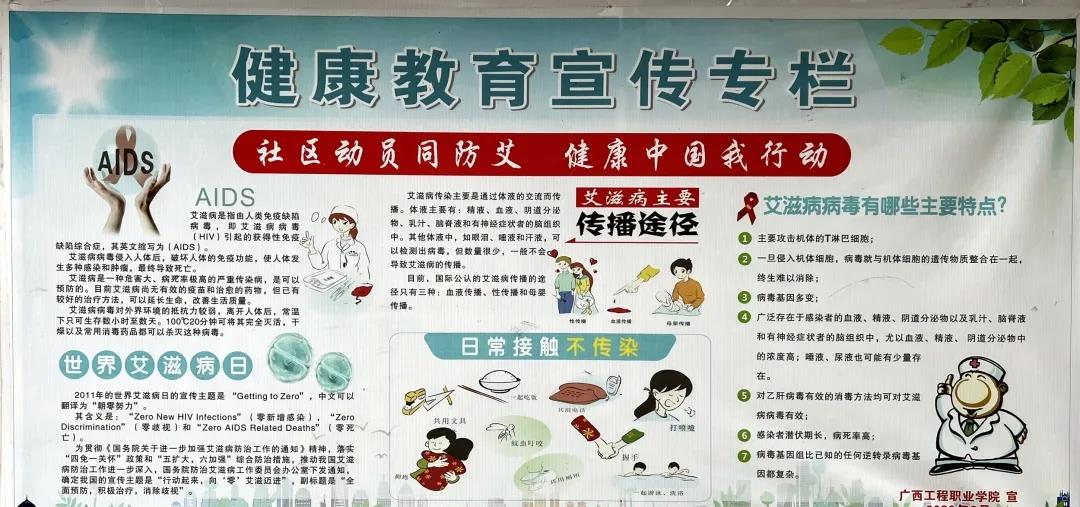 通過展板、宣傳欄知識宣傳及發(fā)放宣傳手冊,告訴同學(xué)們?nèi)绾斡行ьA(yù)防艾滋病、識毒禁毒,珍愛生命,遠離毒品。
