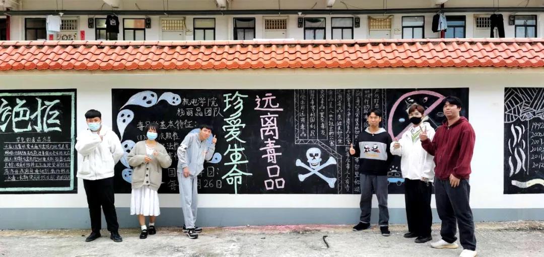 用心完成禁毒宣傳黑板報的同學(xué)們