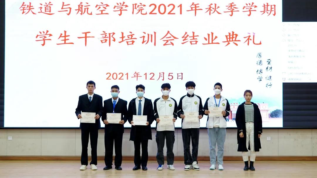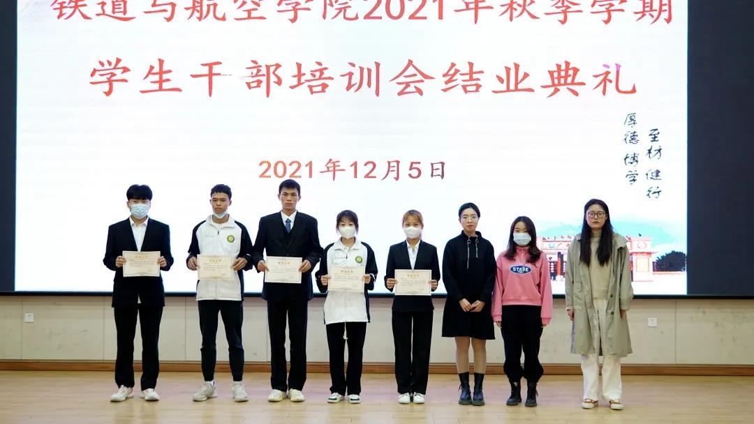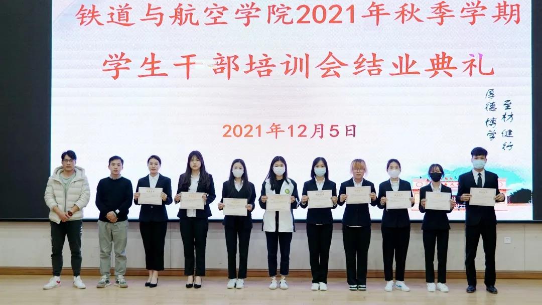 2021年秋季學期“明責任•增才干•做精英干部”培訓班培訓結束后,鐵道與航空學院舉行了結業(yè)典禮,出席典禮的老師為參訓學生干部代表頒發(fā)了結業(yè)證書。