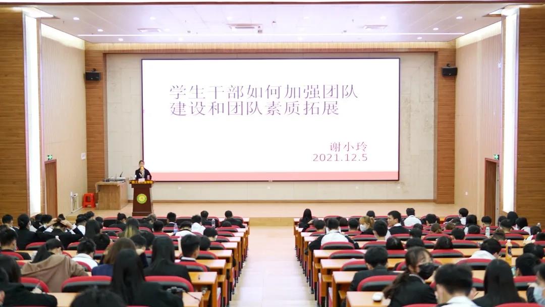 謝小玲老師作題為《學生干部如何加強團隊建設和團隊素質拓展》的專題培訓